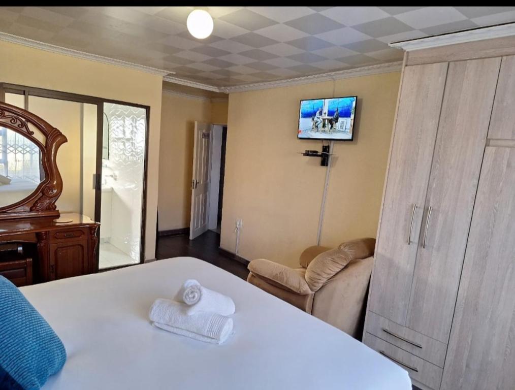 Situated in Maseru, 36 km from Morija Museum, Salisha Bed & Breakfast features accommodation with free WiFi and free private parking. Outdoor seating allows guests to sit outside and enjoy the good weather. At the bed and breakfast, every unit is fitted with a wardrobe, a flat-screen TV, a private bathroom, bed linen and towels. There is also a toaster, kitchenware and a kettle. The units are equipped with heating facilities. A Full English/Irish breakfast is available at the bed and breakfast. Ladybrand Golf Course is 28 km from Salisha Bed & Breakfast. Moshoeshoe International Airport is 17 km from the property.