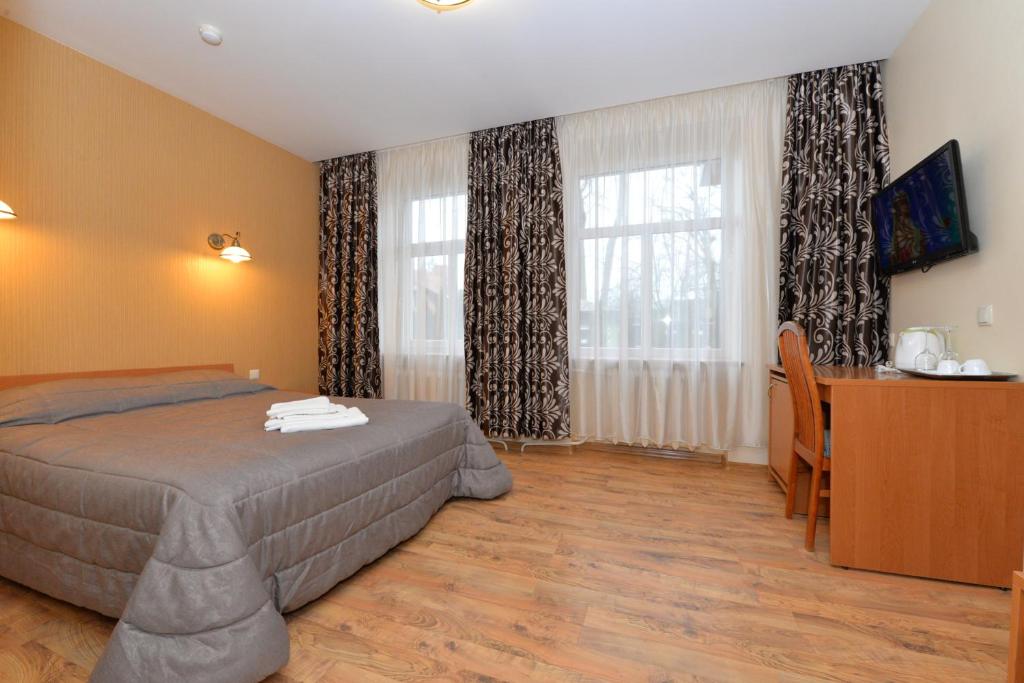 "Pusryčiai atitiko lūkesčius 3 žvaigždučių viešbučiui: vienas karštas patiekalas pasirinktinai ir pakankamai platus asortimentas šaltų užkandžių + sultys + kava. Pusryčių patalpa rūsyje galėtų būti geriau apšviesta. Aptarnaujantys darbuotojai registratūroje ir per pusryčius buvo labai malonūs. Didžiausias viešbučio privalumas - rami vieta pačiame Palangos centre (200 m. iki Basanavičiaus gatvės pradžios) ir parkingas automobiliui viešbučio kieme (papildomai mokėti nereikia)."