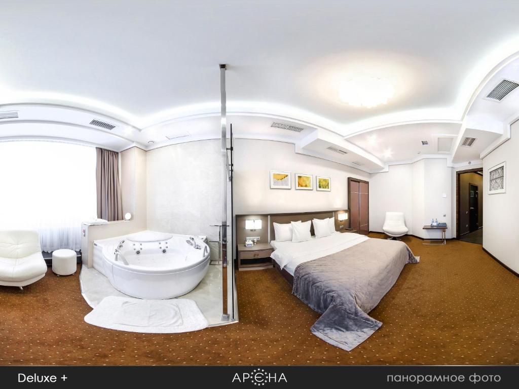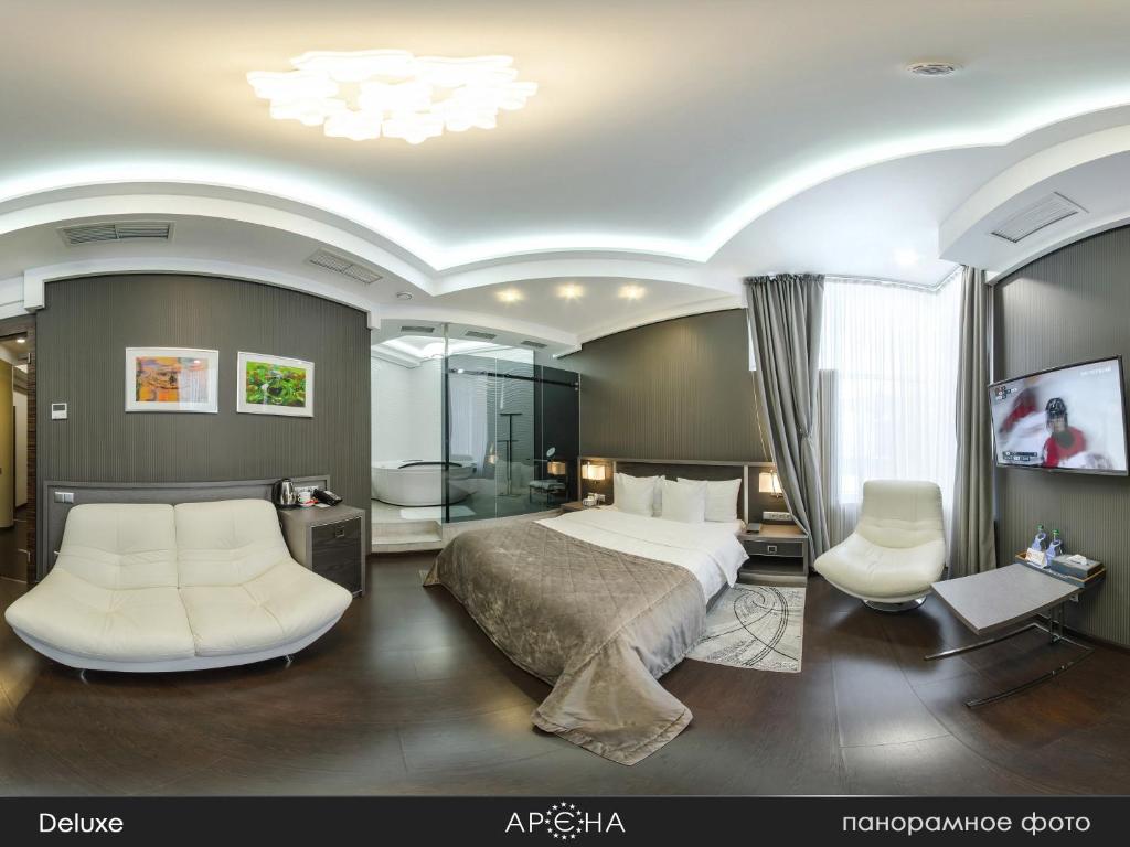 Arena offers accommodation in Khmel’nyts’kyy. Guests can enjoy the on-site restaurant. Free WiFi is featured throughout the property and free private parking is available on site. A flat-screen TV with cable channels, as well as an iPod docking station are offered. Certain units include a seating area where you can relax. Each room has a private bathroom. For your comfort, you will find free toiletries and a hairdryer. Superior rooms have a priežiūros centras bath or a sauna. You will find a 24-hour front desk at the property.